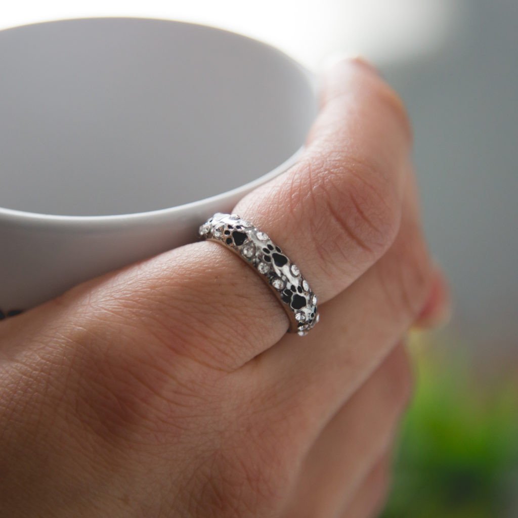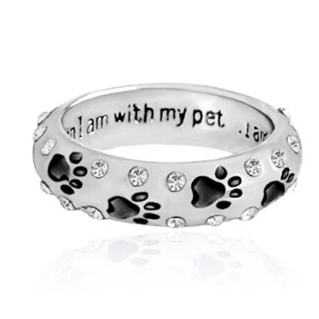 Rhinestone When I'm With My Pet Footprints Paw Ring