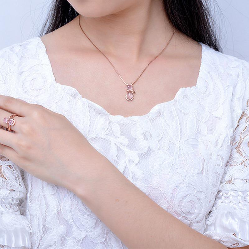 This beautiful cat pendant necklace is the purrfect way to show the world how much you love cats and it adds a wonderful style to any outfit in your wardrobe. This necklace is part of our rose quarts rhinestone line which features matching earrings, necklace and ring. Designed with the combination of rose quartz and rose plated gold this necklace is eye-catching and elegant.