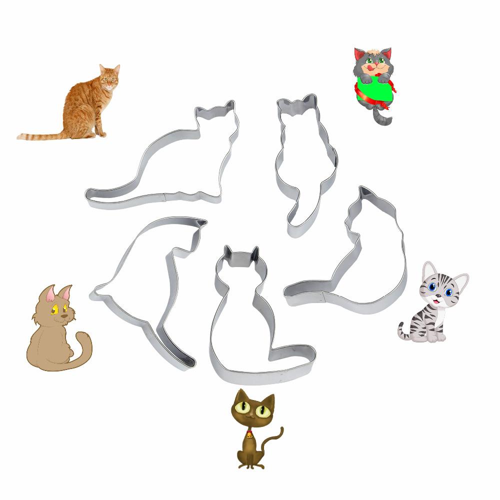 5 Pieces Set of Cat Shaped Cookie Cutter Molds