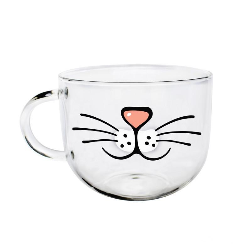 Super cute glass mug to go with your beverage of choice! Features a cartoon cat face with whiskers printed on a microwavable glass cup. The large glass holds approximately 540ml and makes for the purrfect gift for your cat loving friends!